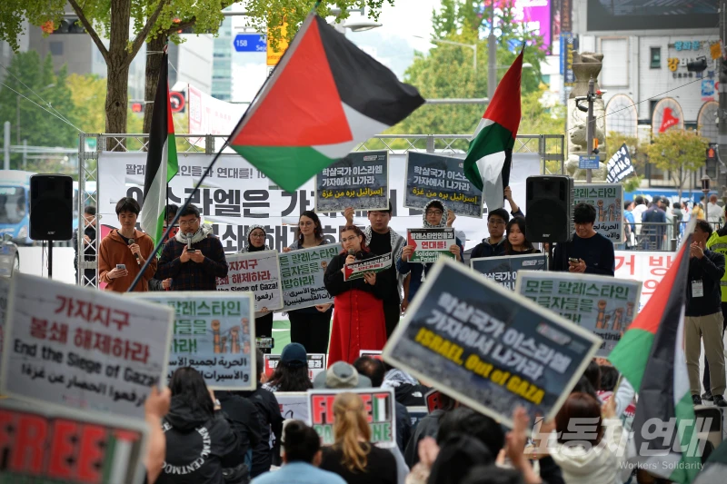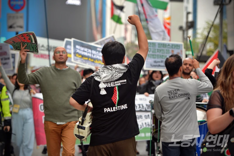 휴전이 위태롭게 이어지고 무기를 내려놓으라는 압박이 하마스에 가해지는 가운데 팔레스타인 저항과 연대하는 목소리가 서울 도심에서 울려퍼졌다.