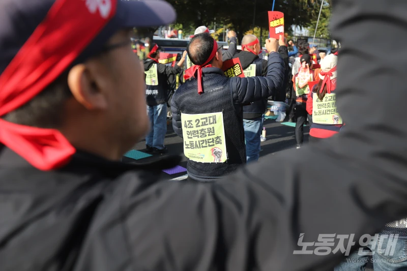 “올해 인천공항에서만 6명의 노동자가 집에 돌아가지 못했습니다. 올 3월에 우리 조합원 한 분은 야간 근무 중에 스스로 목숨을 끊었습니다. 그 조합원이 마지막으로 했던 말은 ‘교대제 개편 언제 되냐’ 였습니다.”