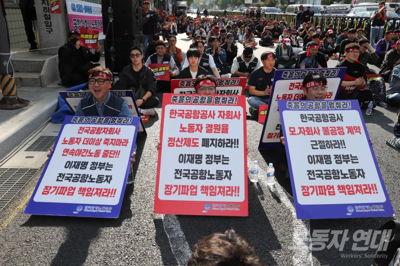 공항 공사들은 노동자들의 요구를 들어라. 이재명 정부도 더는 방관하지 말고 공항 자회사 노동자들 열악한 처지 개선에 나서야 한다.