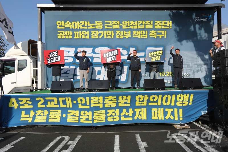 특히 인천공항공사 사장 이학재는 윤석열이 임명한 국민의힘 소속 인사로, 내년 지방선거에서 인천시장 도전을 준비하고 있다. 그는 사소한 꼬투리를 잡아 노동자들에게 소송을 남발하며 탄압해 왔고, 10월 초 연휴 기간 노동자 파업 시기에는 대체인력을 집중 투입하며 파업 파괴에 나선 바 있다.