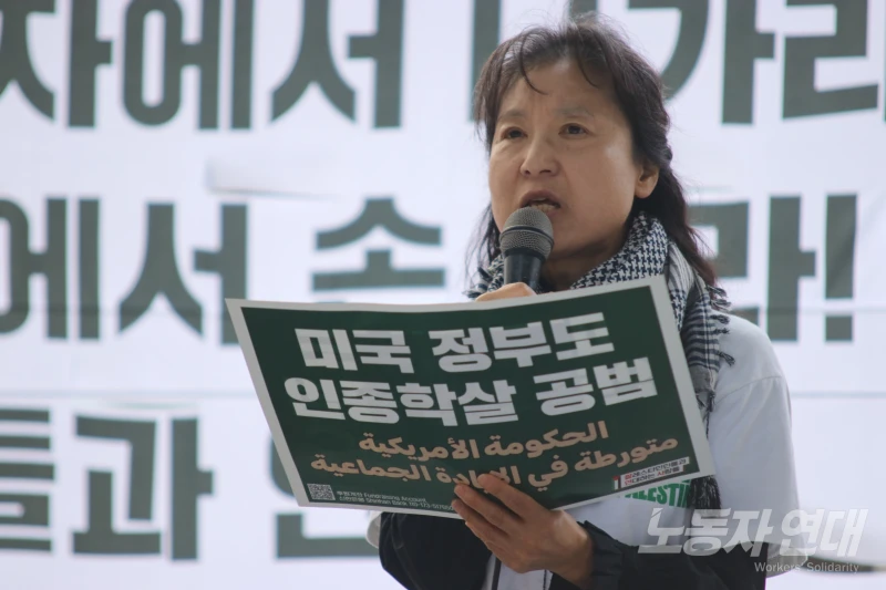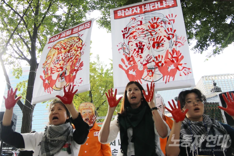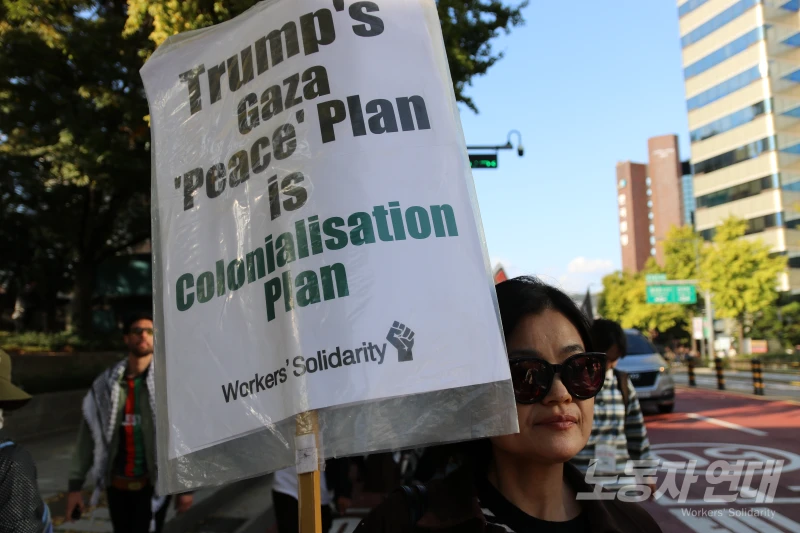 박혜성 기간제교사노동조합 위원장은 “구호 물품의 통제권을 이스라엘에 주는 것이 평화냐”고 꼬집으면서 “하마스의 비무장을 요구하기 전에 서안지구와 가자지구에서 이스라엘 점령군이 나가야 한다”며 트럼프의 휴전 협정을 비판했다.