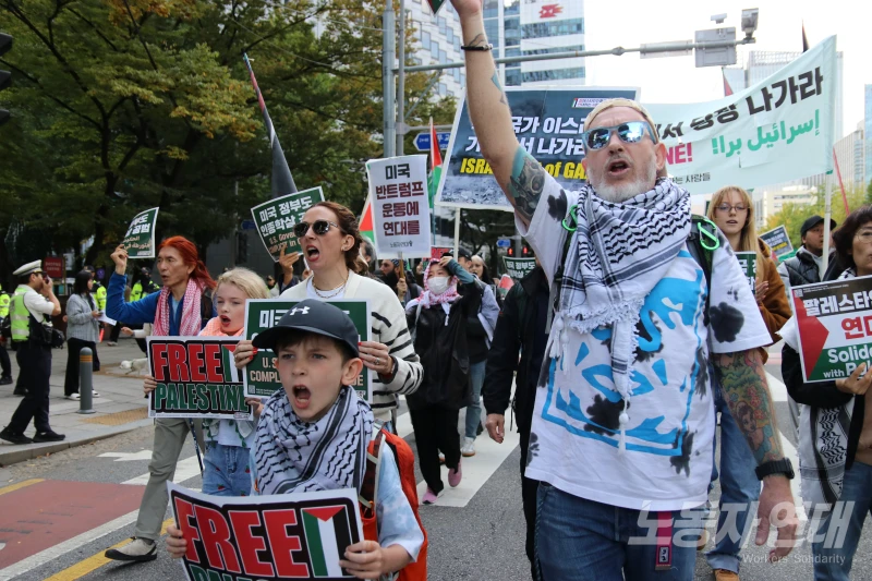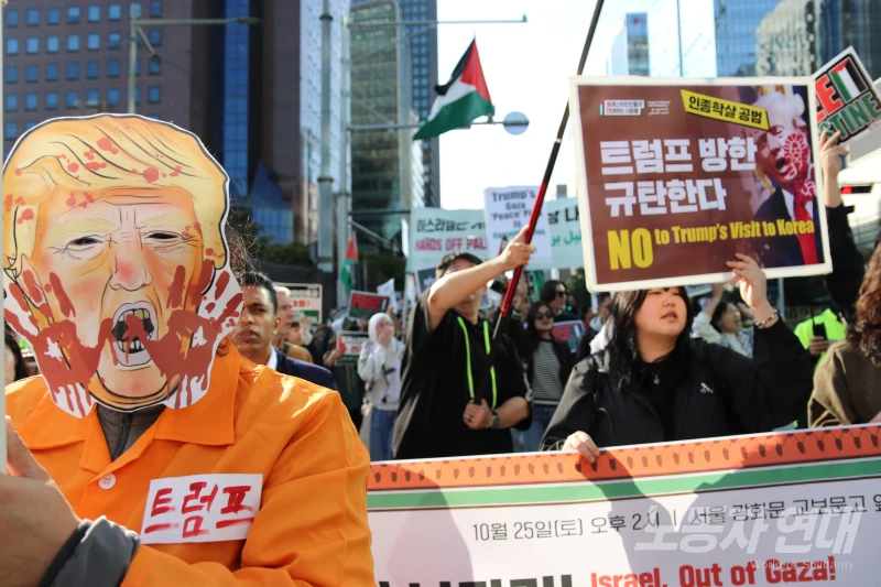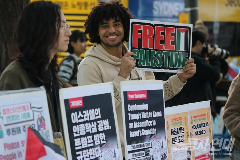 고등학생 김도영 씨는 “아펙(APEC) 회의를 위해 전쟁 범죄자이자 학살자인 트럼프가 방한하는 것에 항의하고 팔레스타인인들과 연대하려고” 이날 집회에 참가했다고 기자에게 말했다.