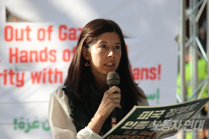 “트럼프 정부는 현재 이스라엘의 군사 전술을 그대로 가져와서 미국 내 이민자들과 시민들을 탄압하고 잡아가고 있습니다. 이런 정부가 어떻게 팔레스타인인들에게 안전과 안정을 가져다 줄 수 있단 말입니까?”