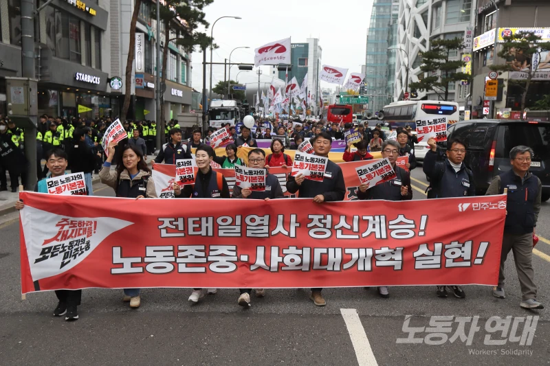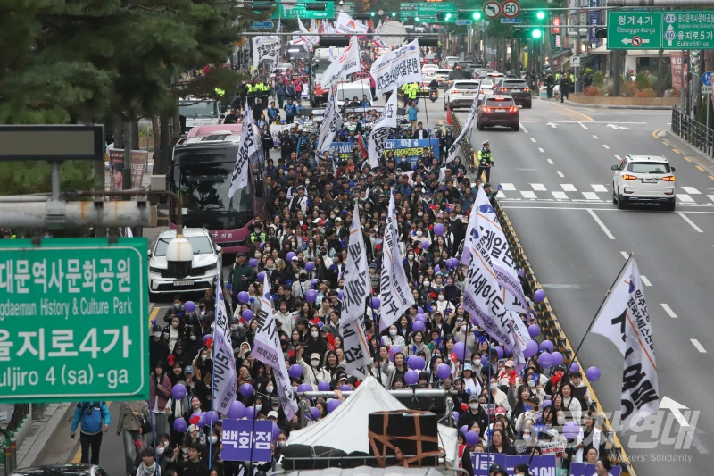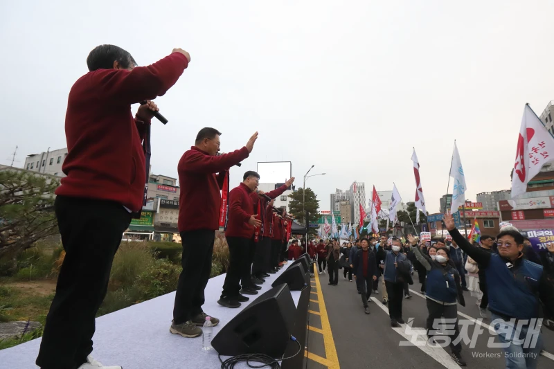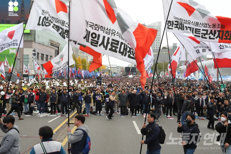 금속노조와 공공운수노조 등에 속한 노동자 3만 명이 동대문디자인플라자(DDP) 앞에서 흥인지문 부근까지의 8차선 도로를 가득 메웠다.