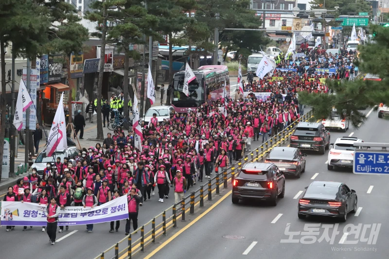 집회를 마친 노동자들은 둘로 나뉘어 서울고용노동청과, 세종호텔 고공농성장을 향해 행진을 했다.