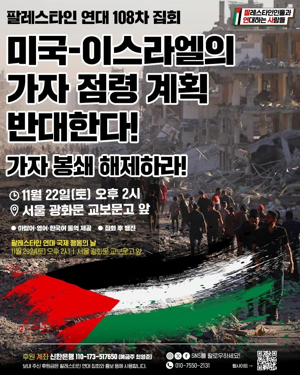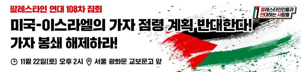 11월 17일 이재명 정부가 유엔 안보리에서 트럼프의 가자지구 ‘평화’ 구상을 지지했다. 팔레스타인인들을 위한 진정한 평화를 바라는 수많은 사람들의 염원을 거스르는 일이다.