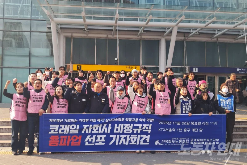 11월 20일, 코레일 자회사 노동자들이 파업 기자회견을 열었다. 이들은 철도 역무원, 주차 관리원, 고객 상담사 등으로 철도 서비스를 담당하는 비정규직 노동자들이다.