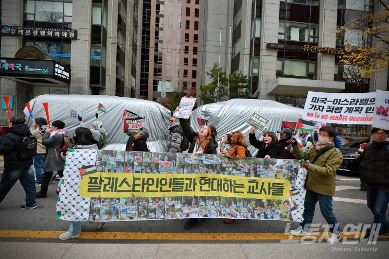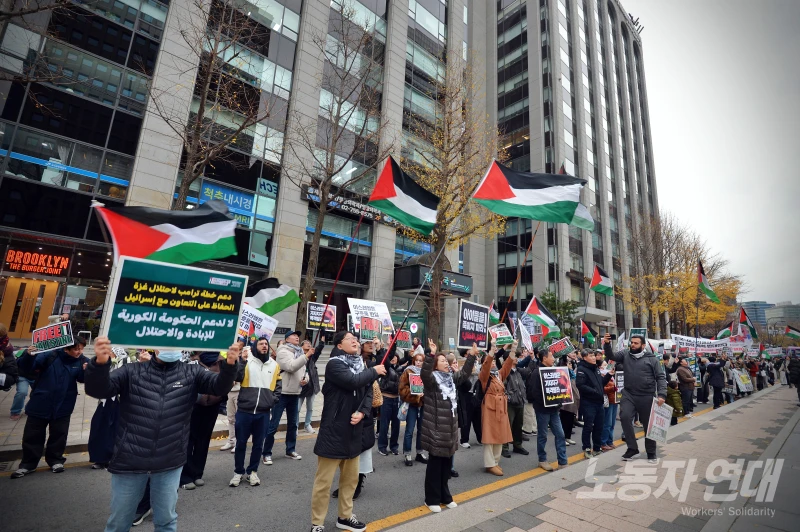 집회를 마친 참가자들은 이스라엘 대사관을 향해 도심 행진에 나섰다.