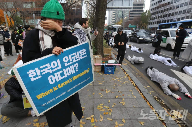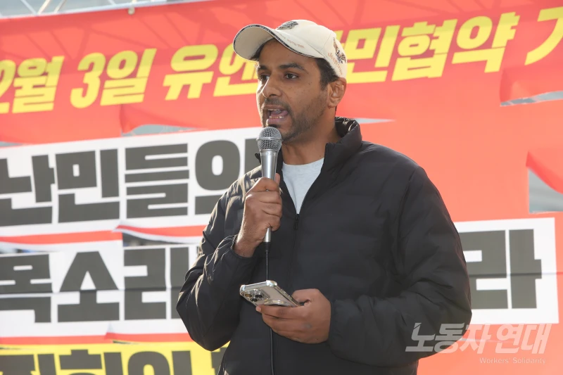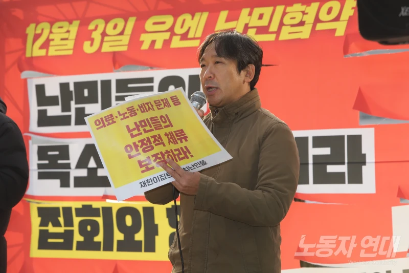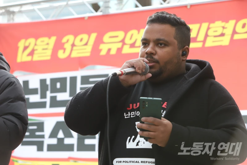 이날 집회는 33년 전 한국 정부가 유엔 난민협약에 가입한 날인 12월 3일을 앞두고 열렸다. 12월 3일은 친민주주의 대중의 힘으로 윤석열의 쿠데타 시도를 저지한 지 1년이 되는 날이기도 하다.