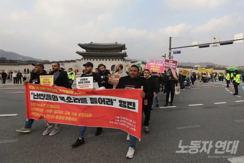 11월 30일 일요일 오후 2시 서울 광화문 교보문고 앞에서 난민들과 그들에 연대하는 사람들의 집회와 행진이 열렸다.