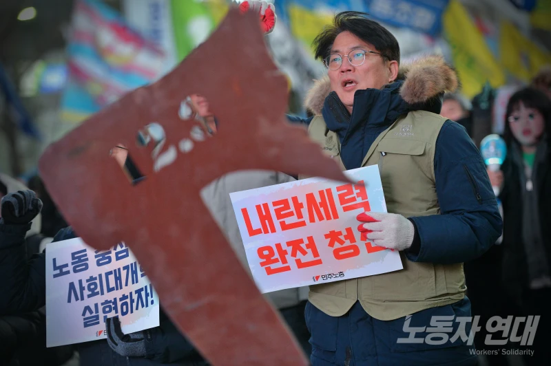 오후 4시에는 같은 장소에서 민주노총도 불법 계엄의 철저한 청산과 노조법 개정 취지를 훼손하는 노동부 시행령 규탄 등을 요구하는 결의대회를 열었다.