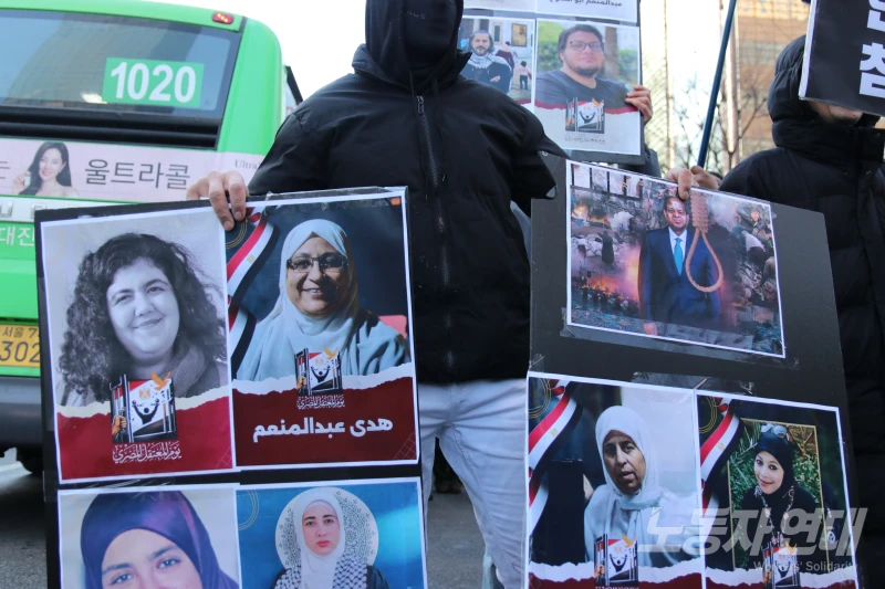 이날 집회에서는 재한 이집트인 정치 활동가가 15년 전인 2011년 1월 25일 이집트에서 발발한 혁명을 기리는 연설을 했다. 연설하는 그의 옆에는 엘시시 정권하에서 수감된 이집트 정치 활동가들의 사진이 놓여 있었다.
