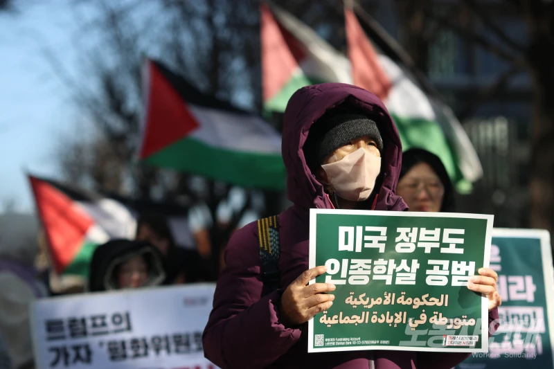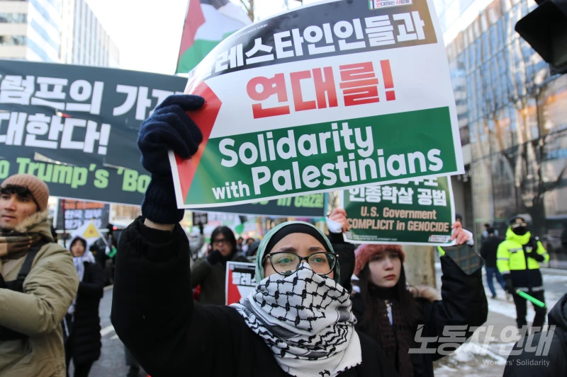 “이는 이재명 정부가 식민 통치 기구의 일부가 돼 팔레스타인인 점령·학살 행위에 가담한다는 뜻입니다. 만일 이재명 정부가 트럼프와 네타냐후의 피 묻은 손을 잡는다면, 이재명 정부는 우리의 거센 분노와 항의에 직면하고야 말 것입니다!”
