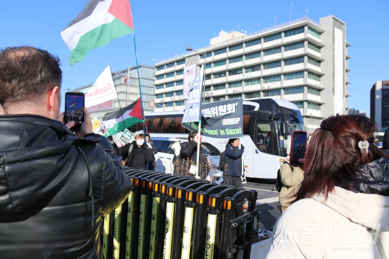 대열은 이스라엘 대사관 앞에 도착해 규탄 행동을 한 후 집회와 행진을 모두 마무리했다. 행진을 향도한 팔연사 활동가는 바로 전날 미국 미니애폴리스를 휩쓴 이민세관단속국(ICE) 반대 대규모 시위에 연대를 표하며, 한국에서도 아래로부터 저항을 건설하자고 호소했다.
