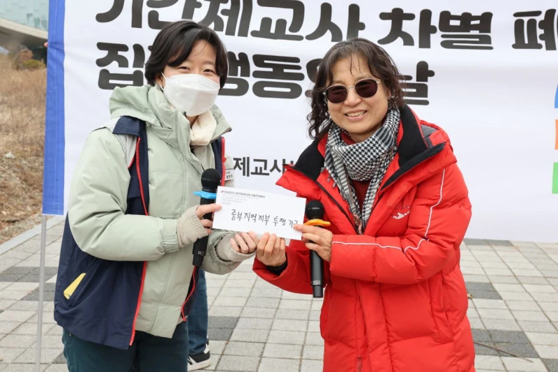 전국기간제교사노동조합은 2026년 1월 14일(수) 오후 2시 30분에 교육부 앞에서 ‘기간제교사 차별폐지 집중행동의 날’을 개최했다. 이날 집회에는 전국에서 조합원, 비조합원 20여 명이 함께했고, 민주노총 충북지역본부, 철도노조 코레일네트웍스 지부, 민주노총 서울지역본부 중부지역위원회 등이 연대해 힘차게 진행됐다.