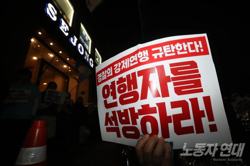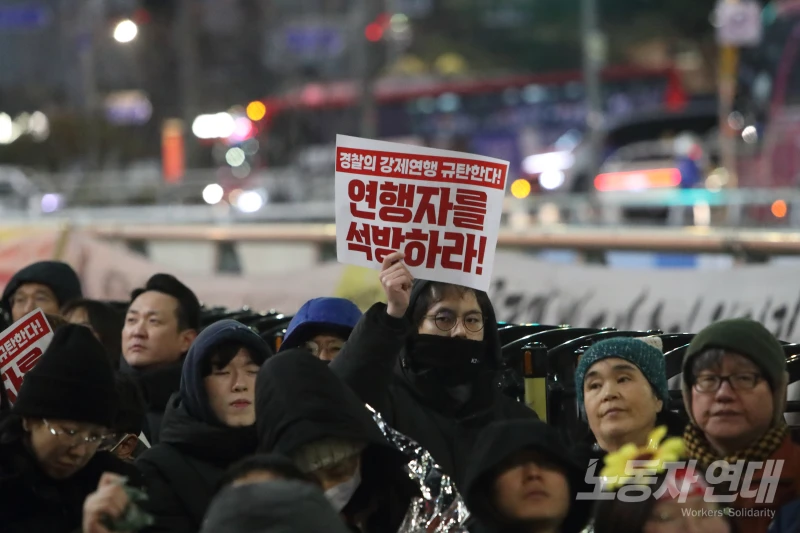 참가자들은 “연행자를 즉각 석방하라!”, “진짜 사장 주명건은 교섭에 나와라!”, “정리해고 철회하라!”를 외치며 얼어붙은 겨울밤을 연대의 열기로 채웠다.