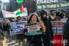한파특보가 내린 추운 날씨에도 집회 참가자들은 “가자 계획 반대한다,” “트럼프는 가자에서 손 떼라” 등의 구호를 기세 좋게 외쳤다.