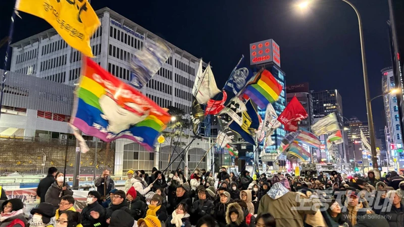 2월 7일(토) 민주노총 조합원들과 진보 정당, 종교인 등 다양한 연대 시민들이 세종호텔 앞에 모였다.