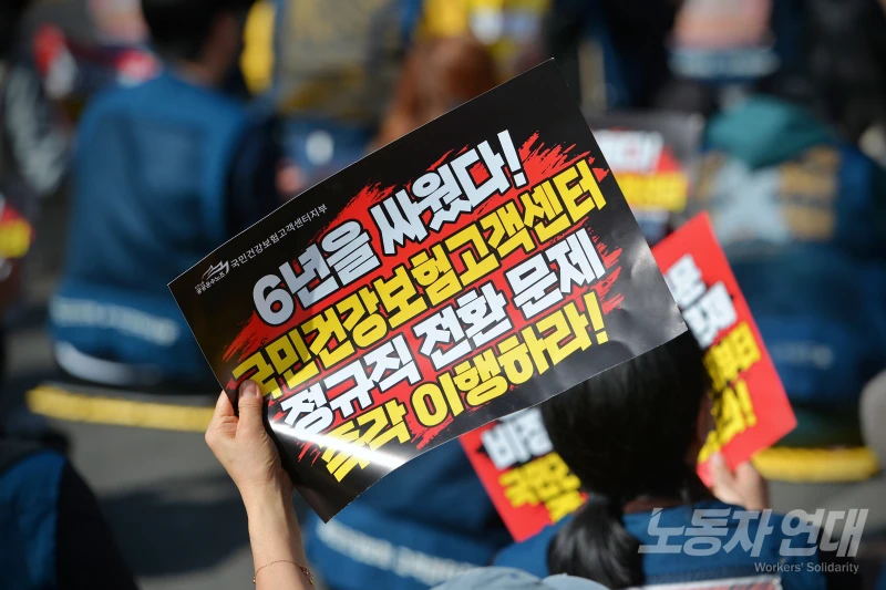 국민건강보험공단 소속기관으로 전환을 요구하는 건보공단 고객센터노조의 투쟁이 계속되고 있다.