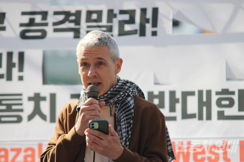 영국 런던에서 온 팔연사 활동가 로이드 씨는 영국 노동당 정부에 의해 테러 단체로 지정됐던 영국의 단체 ‘팔레스타인 액션’이 법정 투쟁에서 승리했다는 반가운 소식을 전했다.