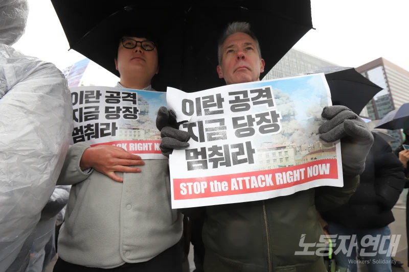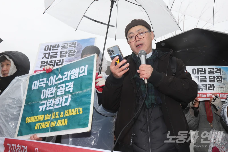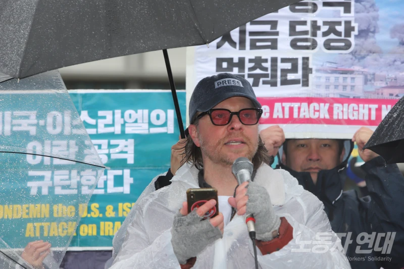 바로 이어서 발언한 재한 미국인 라이언 씨는 자국 정부를 향해 “이란에 대한 미국의 이유 없는 선제 공격을 최대한 강력하게 규탄한다”며 연설을 시작했다.