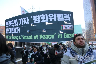 1월 24일 광화문 교보문고 앞에서 열린 ‘팔레스타인인들과 연대하는 사람들’(이하 팔연사) 115차 서울 집회에 모인 사람들의 표정은 상기돼 있었다. 살을 에는 찬바람 때문만은 아니었다. 이날 집회는 ‘가자지구 평화위원회’라는 위선적 명칭의 식민 통치 기구를 수립하려 하는 트럼프를 맹렬히 규탄했다. 집회는 사회자의 강력한 규탄 발언으로 포문을 열었다. “…