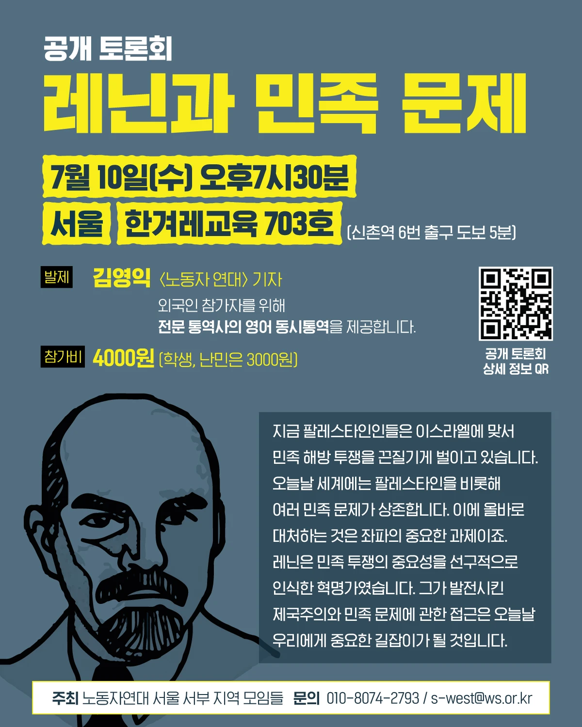 지금 팔레스타인인들은 이스라엘에 맞서 민족 해방 투쟁을 끈질기게 벌이고 있습니다. 오늘날 세계에는 팔레스타인을 비롯해 여러 민족 문제가 상존합니다. 이에 올바로 대처하는 것은 좌파의 중요한 과제이죠. 레닌은 민족 투쟁의 중요성을 선구적으로 인식한 혁명가였습니다. 그가 발전시킨 제국주의와 민족 문제에 관한 접근은 오늘날 우리에게 중요한 길잡이가 될 것입니다.