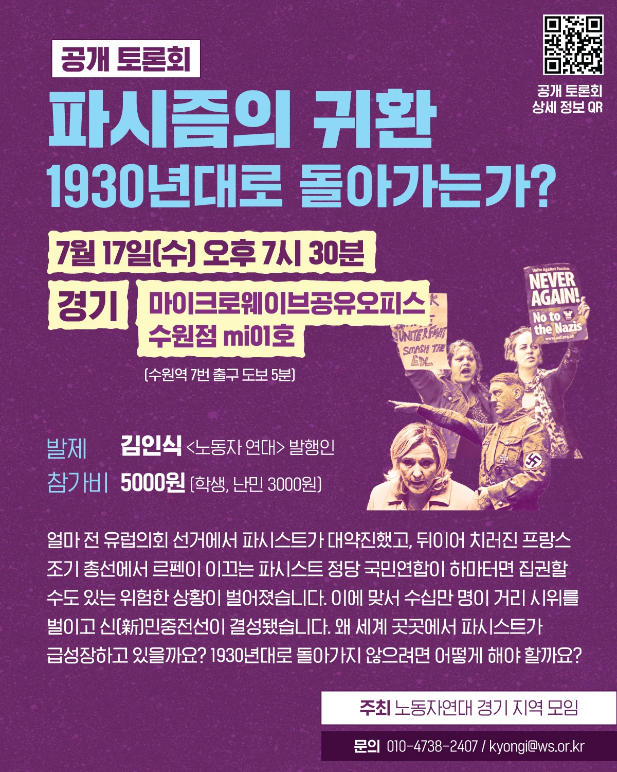 얼마 전 유럽의회 선거에서 파시스트가 대약진했고, 뒤이어 치러진 프랑스 조기 총선에서 르펜이 이끄는 파시스트 정당 국민연합이 하마터면 집권할 수도 있는 위험한 상황이 벌어졌습니다. 이에 맞서 수십만 명이 거리 시위를 벌이고 신(新)민중전선이 결성됐습니다. 왜 세계 곳곳에서 파시스트가 급성장하고 있을까요? 1930년대로 돌아가지 않으려면 어떻게 해야 할까요?