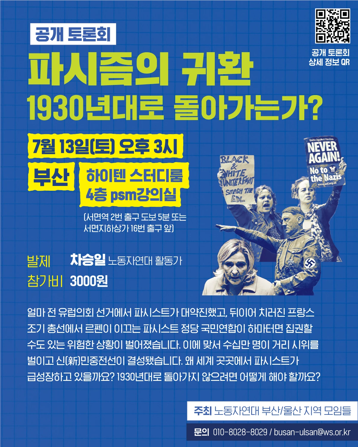얼마 전 유럽의회 선거에서 파시스트가 대약진했고, 뒤이어 치러진 프랑스 조기 총선에서 르펜이 이끄는 파시스트 정당 국민연합이 하마터면 집권할 수도 있는 위험한 상황이 벌어졌습니다. 이에 맞서 수십만 명이 거리 시위를 벌이고 신(新)민중전선이 결성됐습니다. 왜 세계 곳곳에서 파시스트가 급성장하고 있을까요? 1930년대로 돌아가지 않으려면 어떻게 해야 할까요?