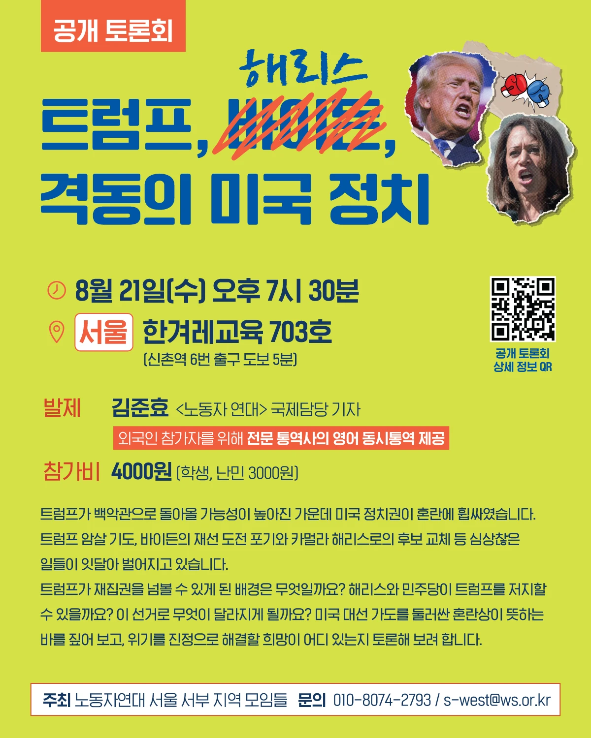 21 August(Wed) 2024, 7:30pm | Speaker: Kim Joonhyo (A Workers' Solidarity journalist for international affairs)