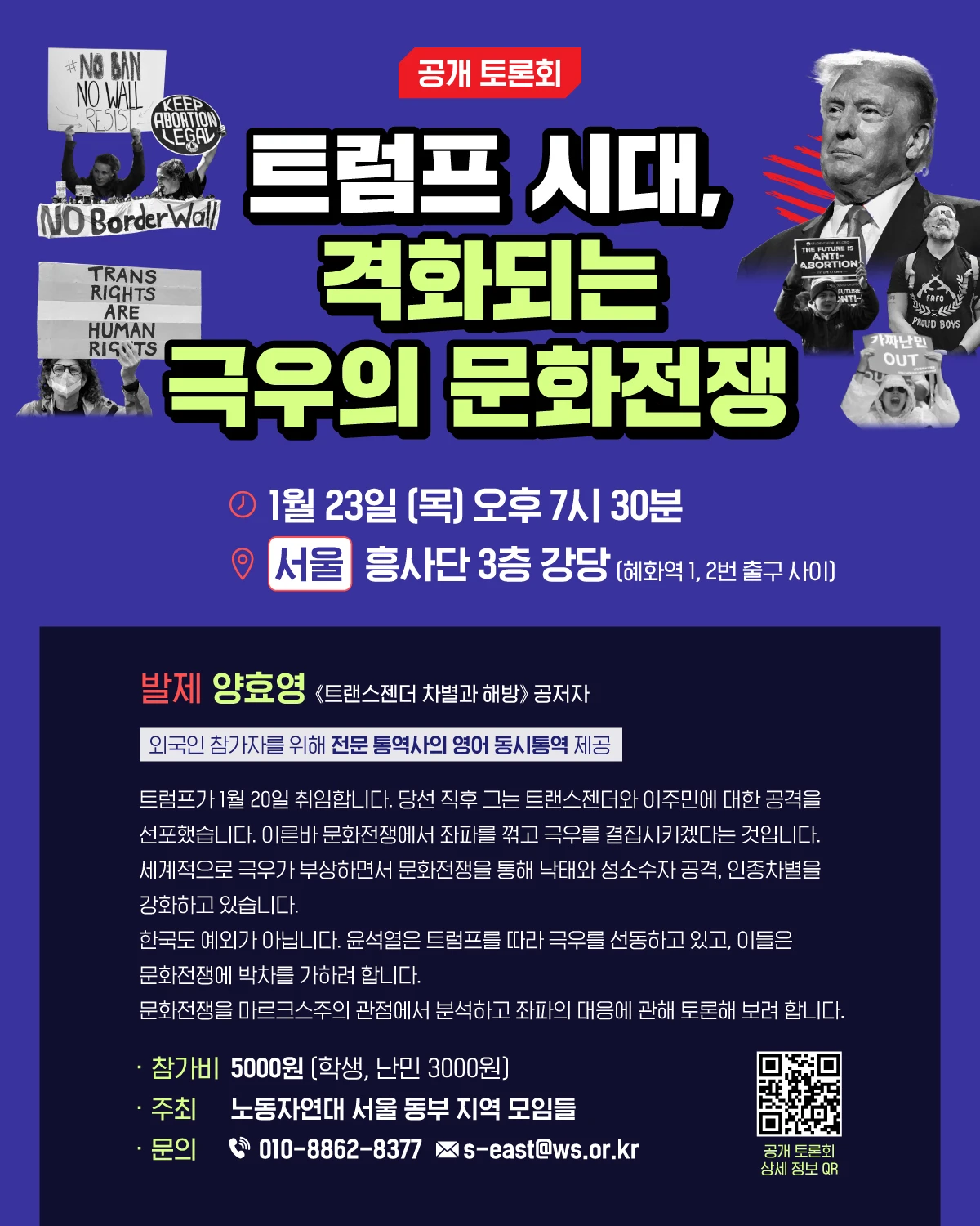 한국도 예외가 아닙니다. 윤석열은 트럼프를 따라 극우를 선동하고 있고, 이들은 문화전쟁에 박차를 가하려 합니다.