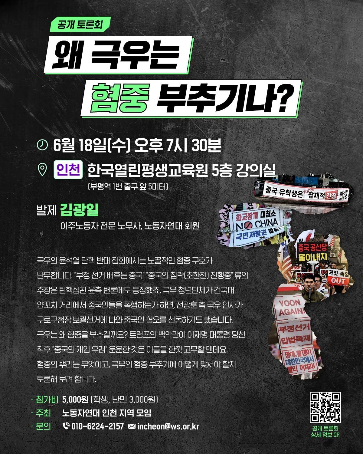 극우는 왜 혐중을 부추길까요? 트럼프의 백악관이 이재명 대통령 당선 직후 “중국의 개입 우려” 운운한 것은 이들을 한껏 고무할 텐데요. 혐중의 뿌리는 무엇이고, 극우의 혐중 부추기에 어떻게 맞서야 할지 토론해 보려 합니다.