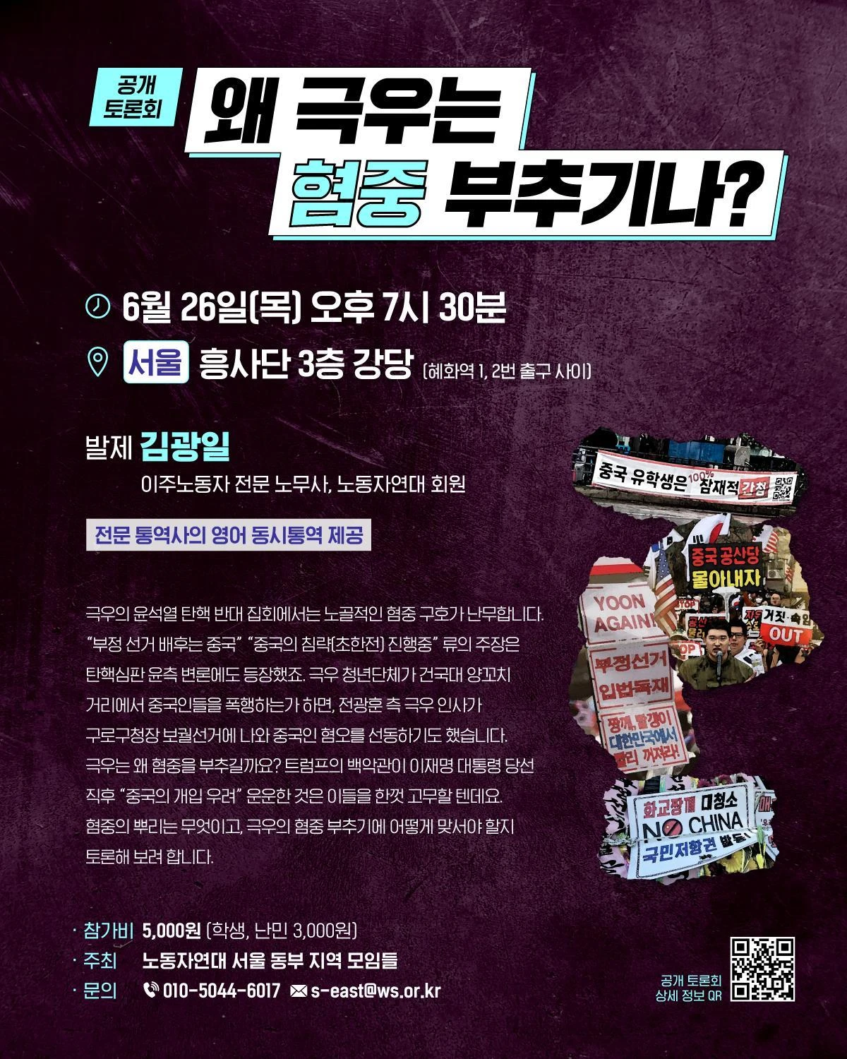 Why does the far right stoke anti-Chinese sentiment? Trump's White House's talk of concern about “Chinese interference” after the election of Lee Jae-myung likely emboldened them. We will discuss what's the root of anti-Chinese sentiment and how to resist the far right’s attempts to fuel it.