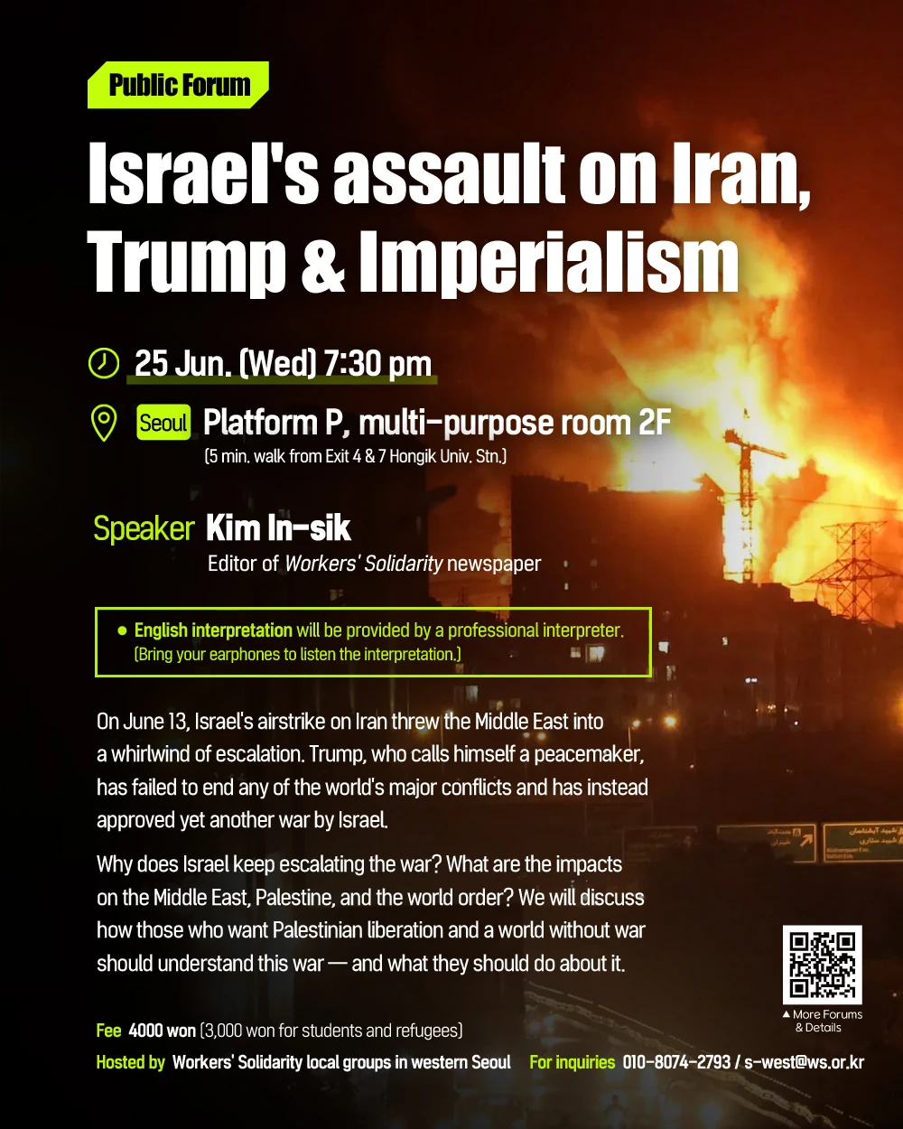 ※ English interpretation will be provided by a professional interpreter.(Bring your earphones to listen the interpretation.)