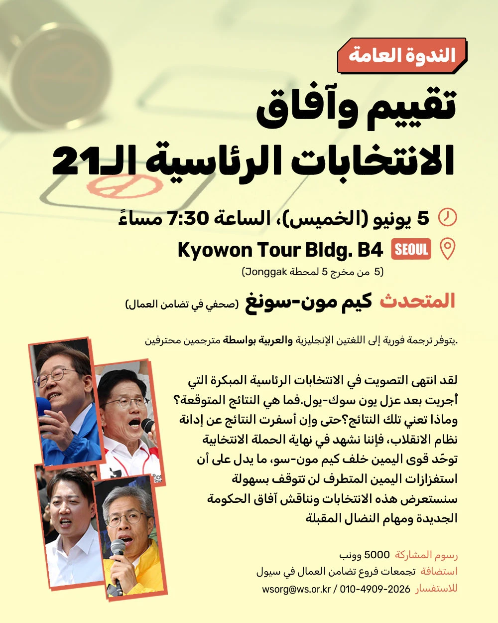 لقد انتهى التصويت في الانتخابات الرئاسية المبكرة التي أُجريت بعد عزل يون سوك-يول. فما هي النتائج المتوقعة؟ وماذا تعني تلك النتائج؟ حتى وإن أسفرت النتائج عن إدانة نظام الانقلاب، فإننا نشهد في نهاية الحملة الانتخابية توحّد قوى اليمين خلف كيم مون-سو، ما يدل على أن استفزازات اليمين المتطرف لن تتوقف بسهولة. سنستعرض هذه الانتخابات ونناقش آفاق الحكومة الجديدة ومهام النضال المقبلة.