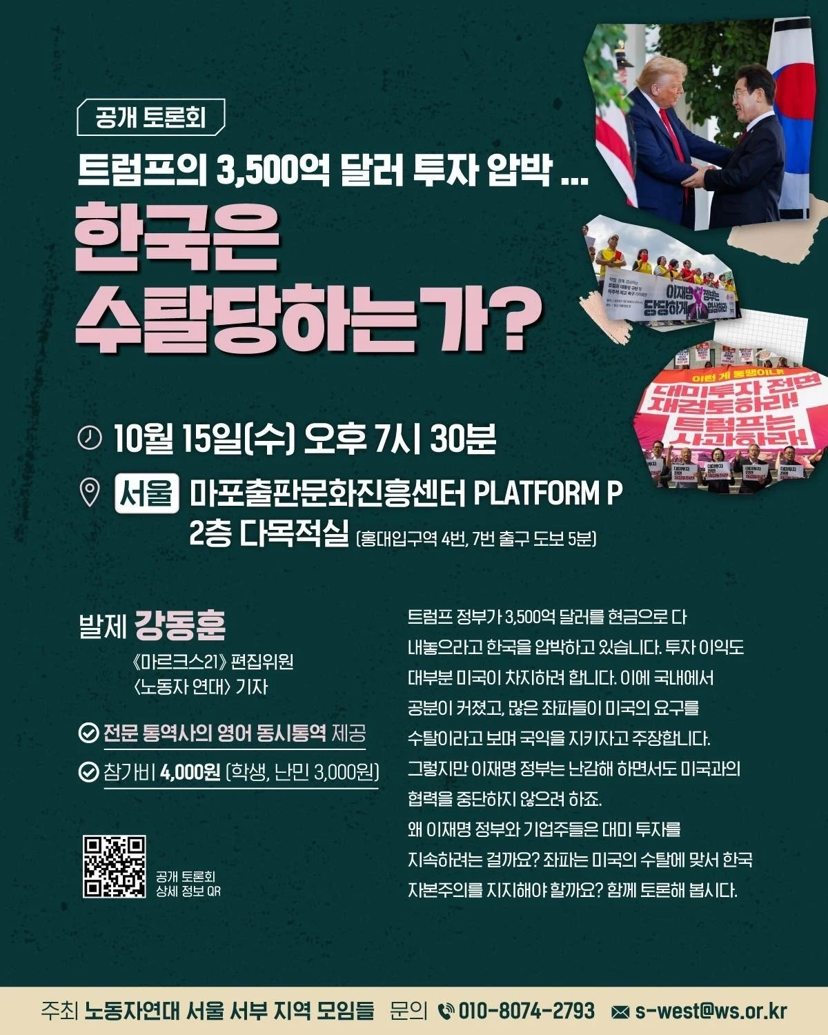 왜 이재명 정부와 기업주들은 대미 투자를 지속하려는 걸까요? 좌파는 미국의 수탈에 맞서 한국 자본주의를 지지해야 할까요? 함께 토론해 봅시다.