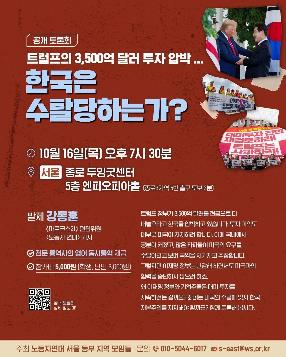 16 October(Thu) 2025, 7:30pm | Speaker: Kang Dong-hoon (Editorial board member of Marx21, journalist for Workers' Solidarity newspaper)