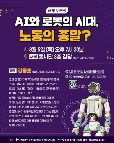05 March(Thu) 7:30pm | Speaker: Kang Dong-hoon (Workers’ Solidarity journalist for economic affairs)