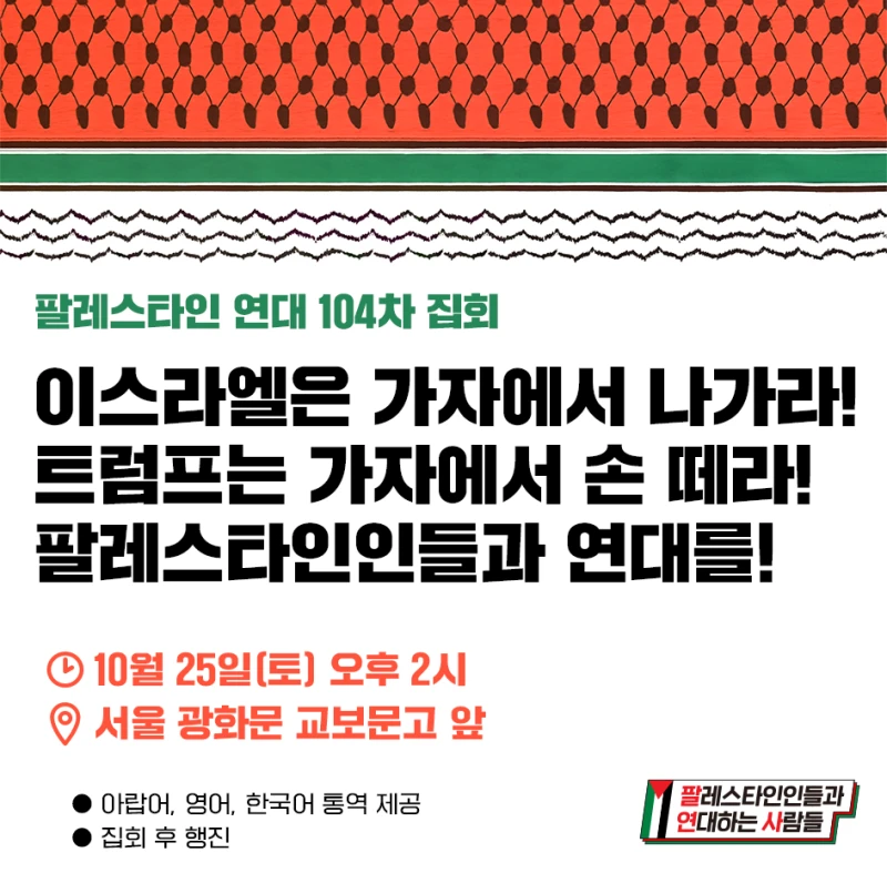 ‘팔레스타인인들과 연대하는 사람들’ 103차 서울 집회