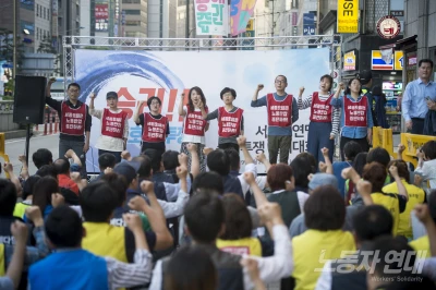 서울 명동 세종호텔 앞에 투쟁과 연대의 인파가 넘치다