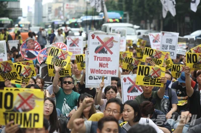 서울 도심에서 트럼프 방한 규탄 목소리가 울려 퍼지다