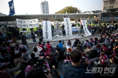 11월 14일 전국노동자대회가 서울 14곳과 13개 지역에서 동시다발로 열렸다. 이번 노동자 대회는 노동개악이 초읽기에 들어간 상황에서 열렸다. 정부는 지난 2년을 끌어 온 노동개악을 이번 국회에서는 반드시 통과시키려 하고 있다. 조만간 국회 환노위 전체회의와 본회의가 예정돼 있다. 정부와 국민의힘이 ‘초당적 협력’으로 추진하는 이번 노동개악은 노동자들…