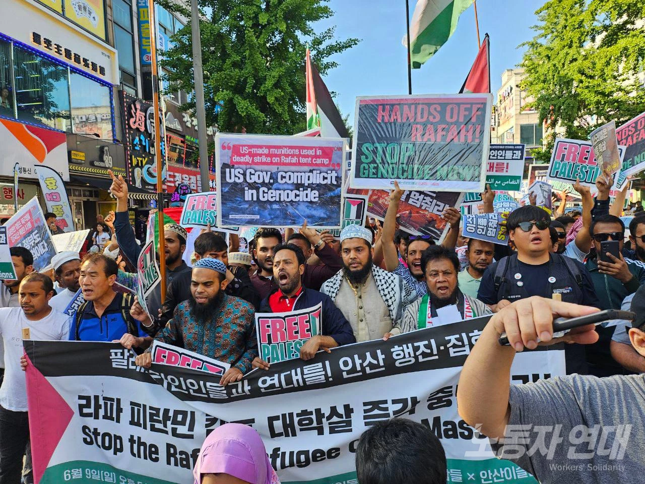 6월 9일 안산에서 처음 열린 팔레스타인 연대 시위에 600여 명이 모였습니다. 이 집회는 ‘팔레스타인인들과 연대하는 사람들’과 ‘안산이슬람센터’가 공동 주최했으며, 내국인뿐만 아니라 다양한 이주민들이 많이 참가했습니다. 참가자들은 라파 피란민 캠프 학살과 누세이라트의 200여 명 학살 등 이스라엘의 만행에 분노하며 항의 목소리를 높였습니다. 또한 팔레스타인인들의 저항을 지지하며 6월 23일 전국 집중 행동의 날 집회도 적극 홍보했습니다. 이주민의 도시, 안산에서 솟구친 팔레스타인 연대 행동을 영상으로 만나 보세요.