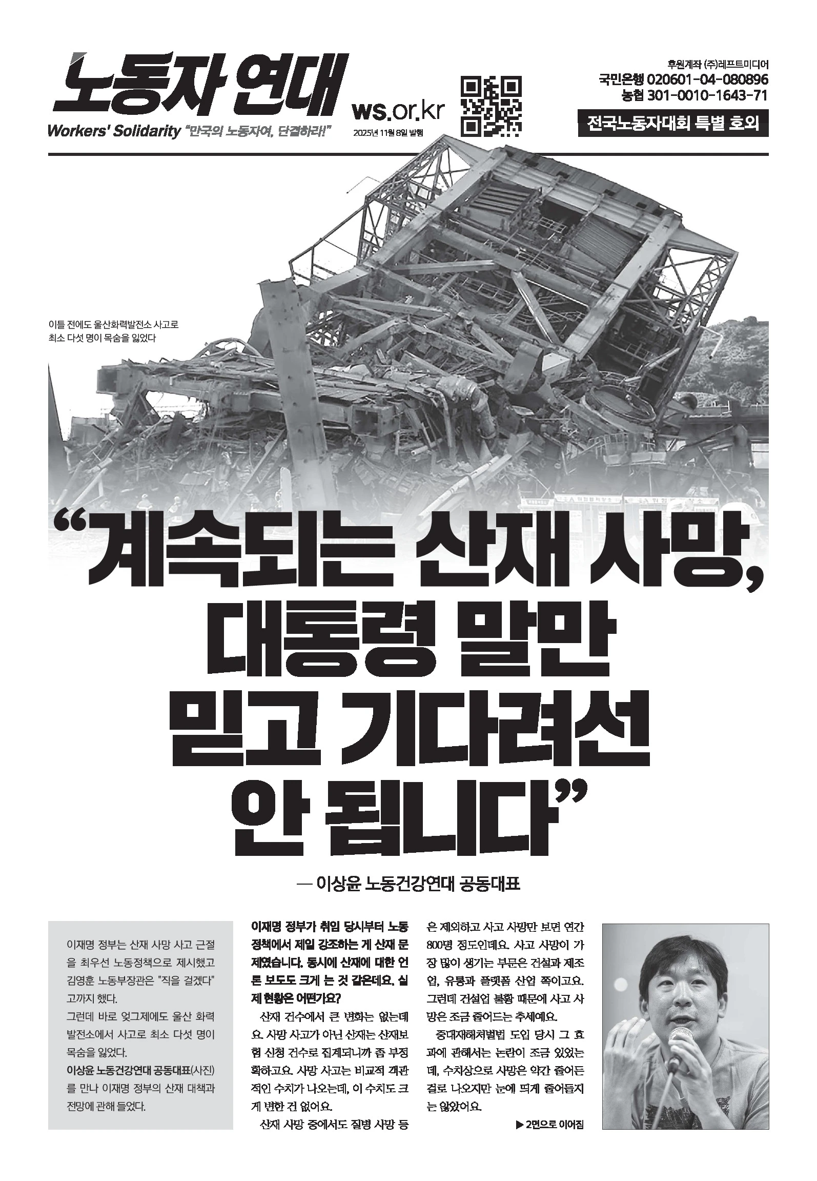 👉 이상윤 노동건강연대 공동대표 인터뷰: “계속되는 산재 사망, 대통령 말만 믿고 기다려선 안 됩니다”