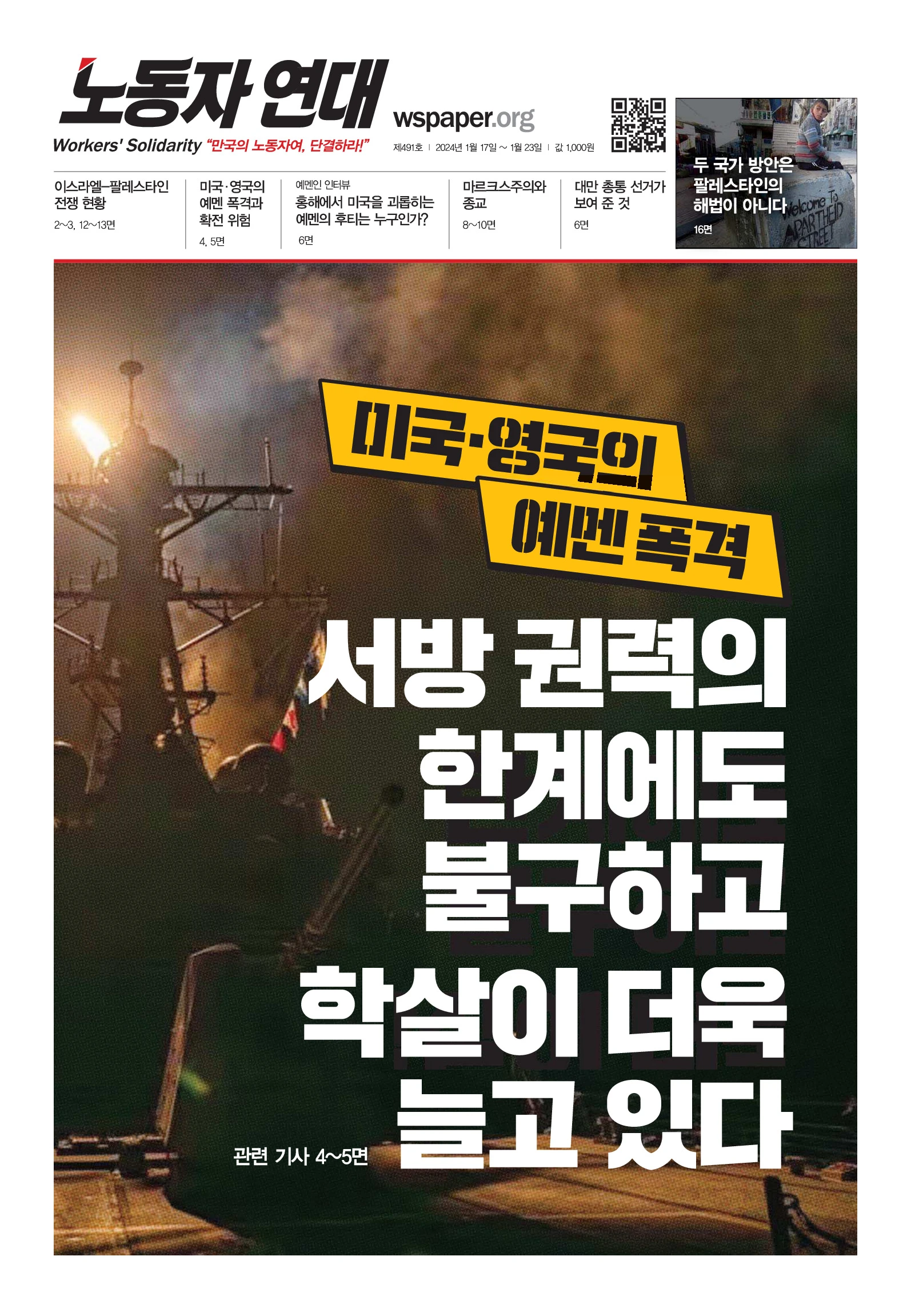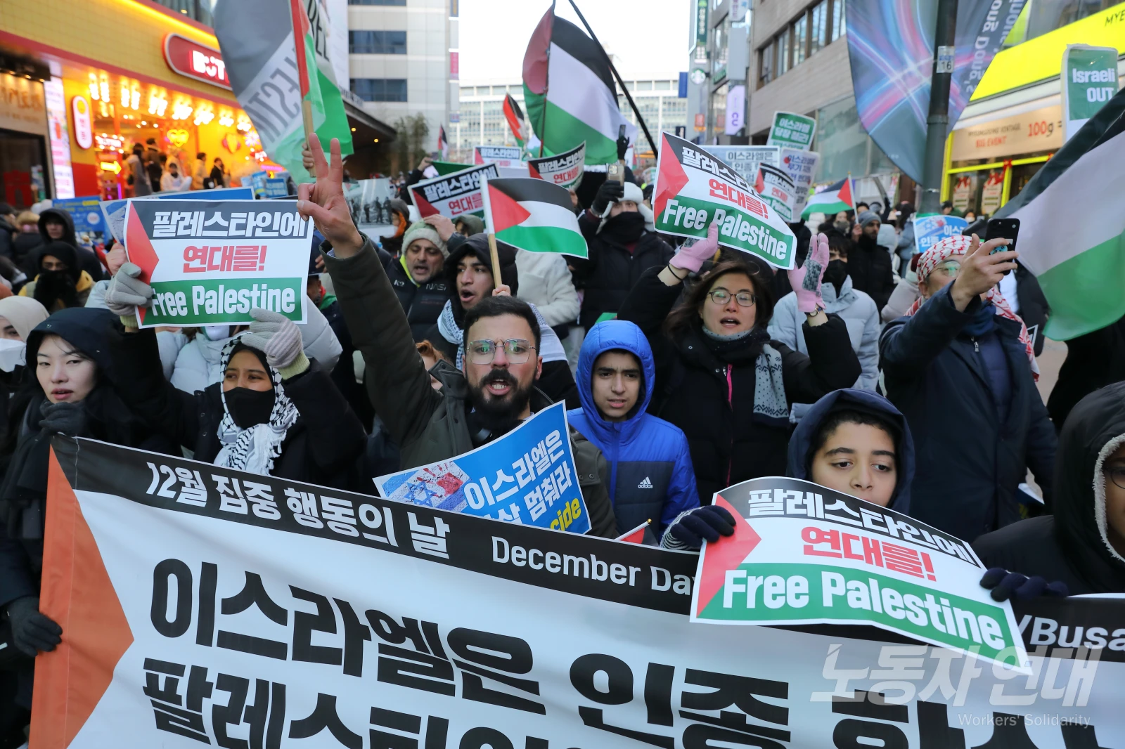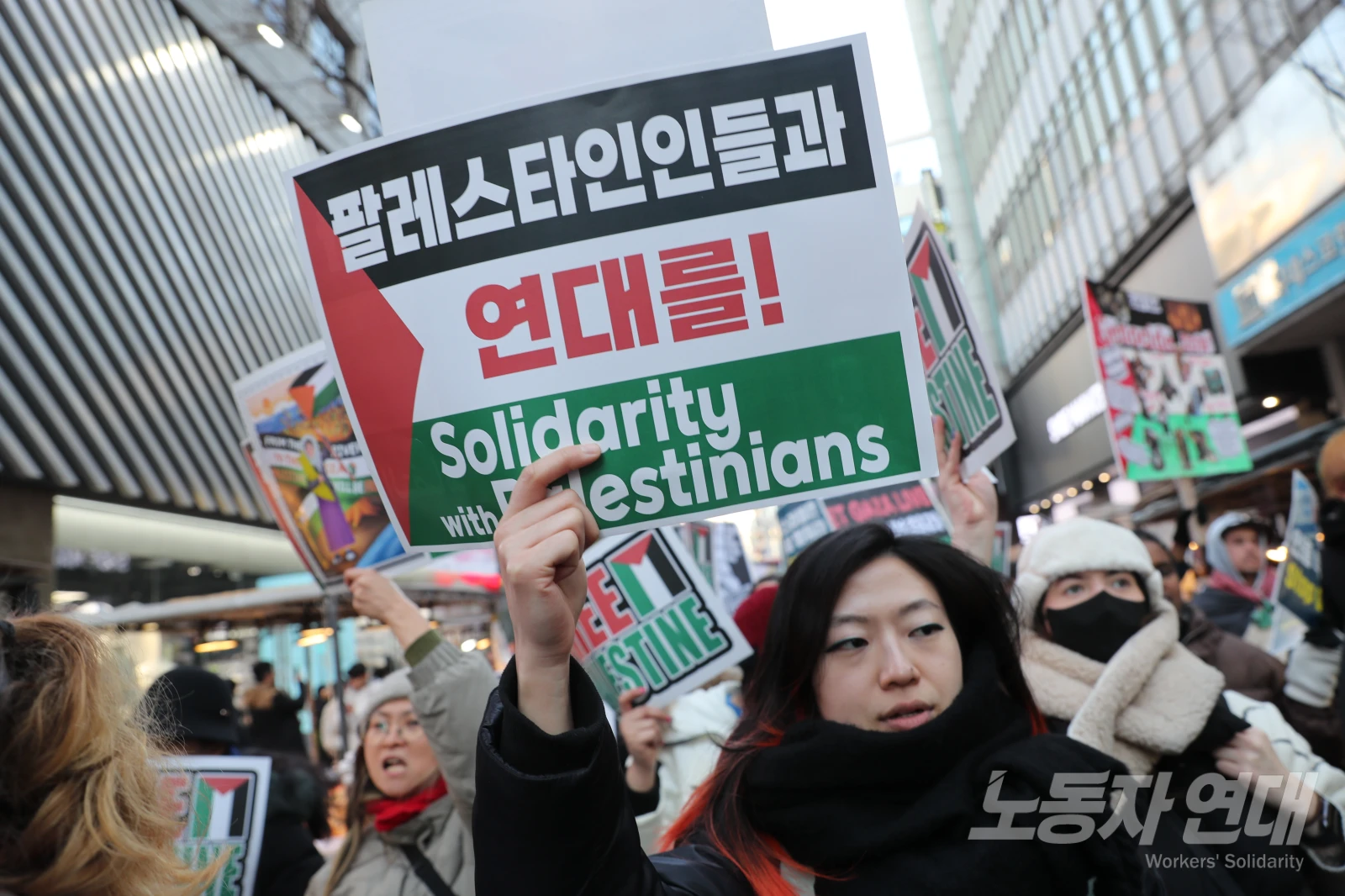 1월 13일 국제 행동의 날, 세계 곳곳에 팔레스타인 연대 물결이 일렁였습니다. 45개국 121개 도시에서 시위가 열리는 가운데, 서울에서는 내외국인 700여 명이 모여 집회와 행진을 벌였습니다. “이스라엘의 폭력은 저항을 꺾을 수 없다!” 집회 참가자들은 이스라엘의 학살과 점령을 멈추려면 더 강력한 저항과 연대가 계속돼야 한다고 호소했습니다. 또한 미국·영국의 예멘 폭격과 이를 지지한 한국 정부를 규탄하며, 예멘인들의 저항을 응원했습니다. 행진을 본 거리의 시민들은 사진을 찍고 박수를 치기도 했습니다. 뜨거운 국제 연대의 현장을 영상으로 만나 보세요.