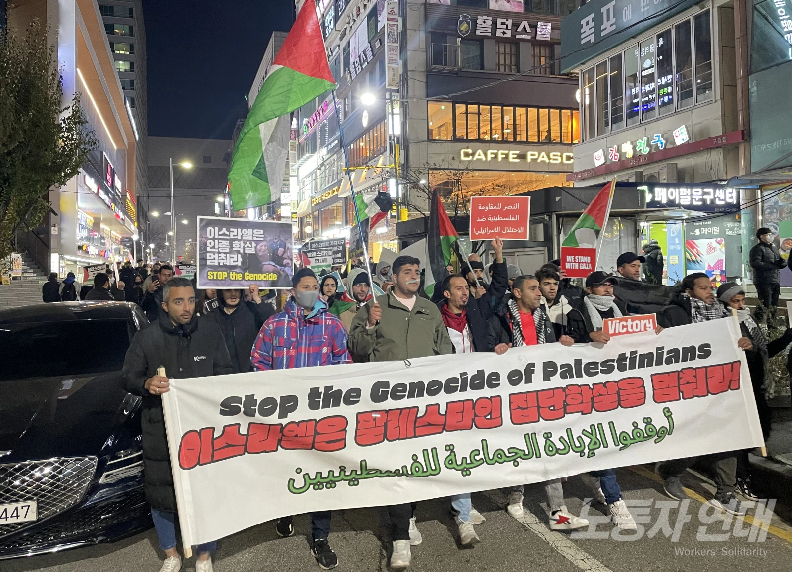 오늘 부산에서 팔레스타인 연대 집회와 행진이 힘차게 진행됐습니다. 250명이 넘는 다양한 국적의 사람들이 참가했고, 모두 열정적으로 이스라엘의 대규모 공격 재개와 인종 학살을 규탄했습니다. 활력 넘치는 도심 행진은 많은 시민들의 주목을 받았습니다. 참가자들은 이스라엘의 팔레스타인 학살을 멈추기 위해 부산과 서울 그리고 세계 곳곳에서 연대 운동이 계속돼야 한다고 호소했습니다. 그리고 12월 17일 부산 3차 집회에 더 많이 모이자며 서로를 독려했습니다. 팔레스타인 연대에 대한 결연한 의지를 보여 준 부산 집회 현장을 지금 만나 보세요.