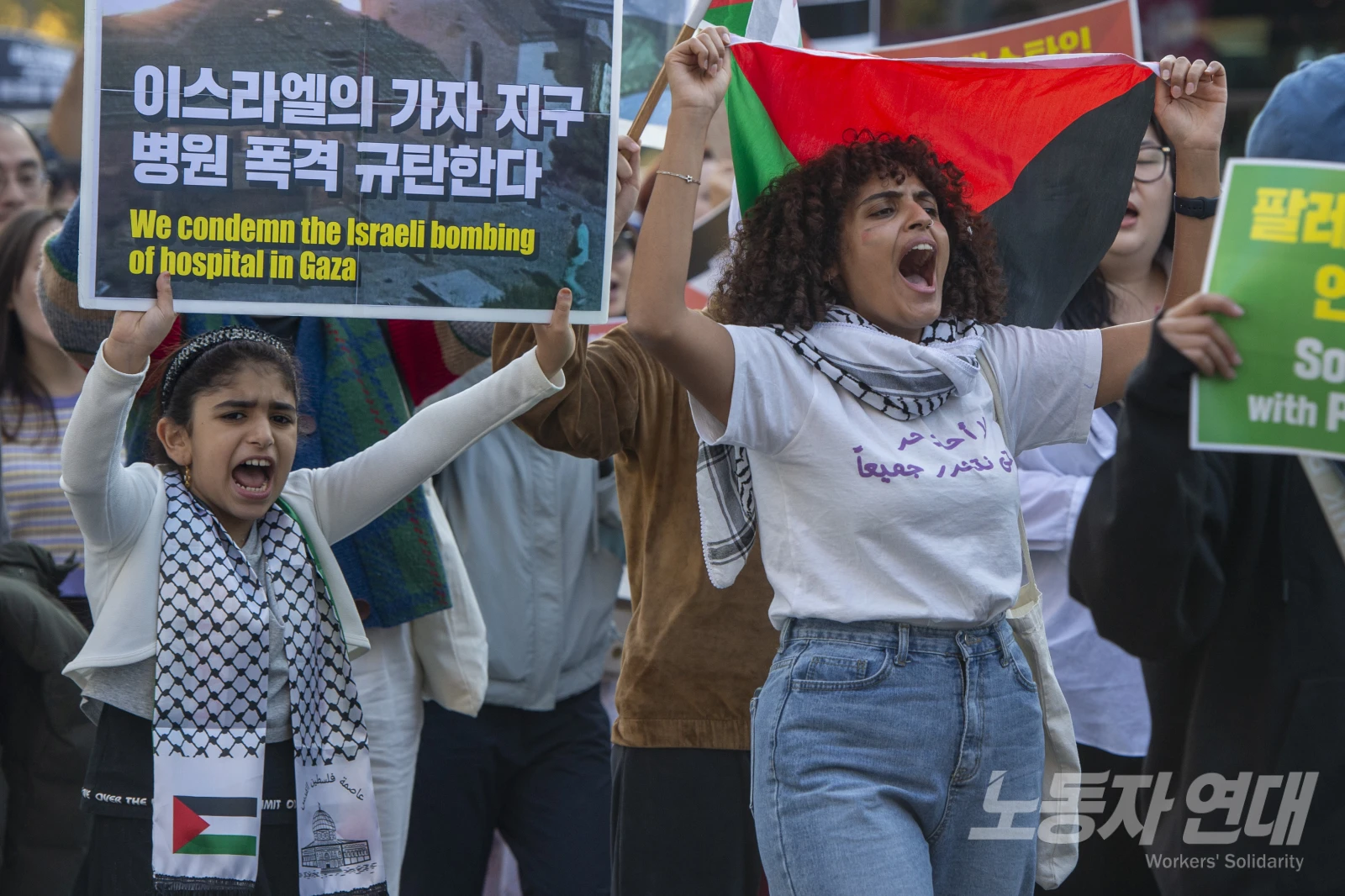 - 이스라엘은 가자지구 폭격 중단하라! - 가자지구 대량학살 중단하라! - 팔레스타인 저항 정당하다!