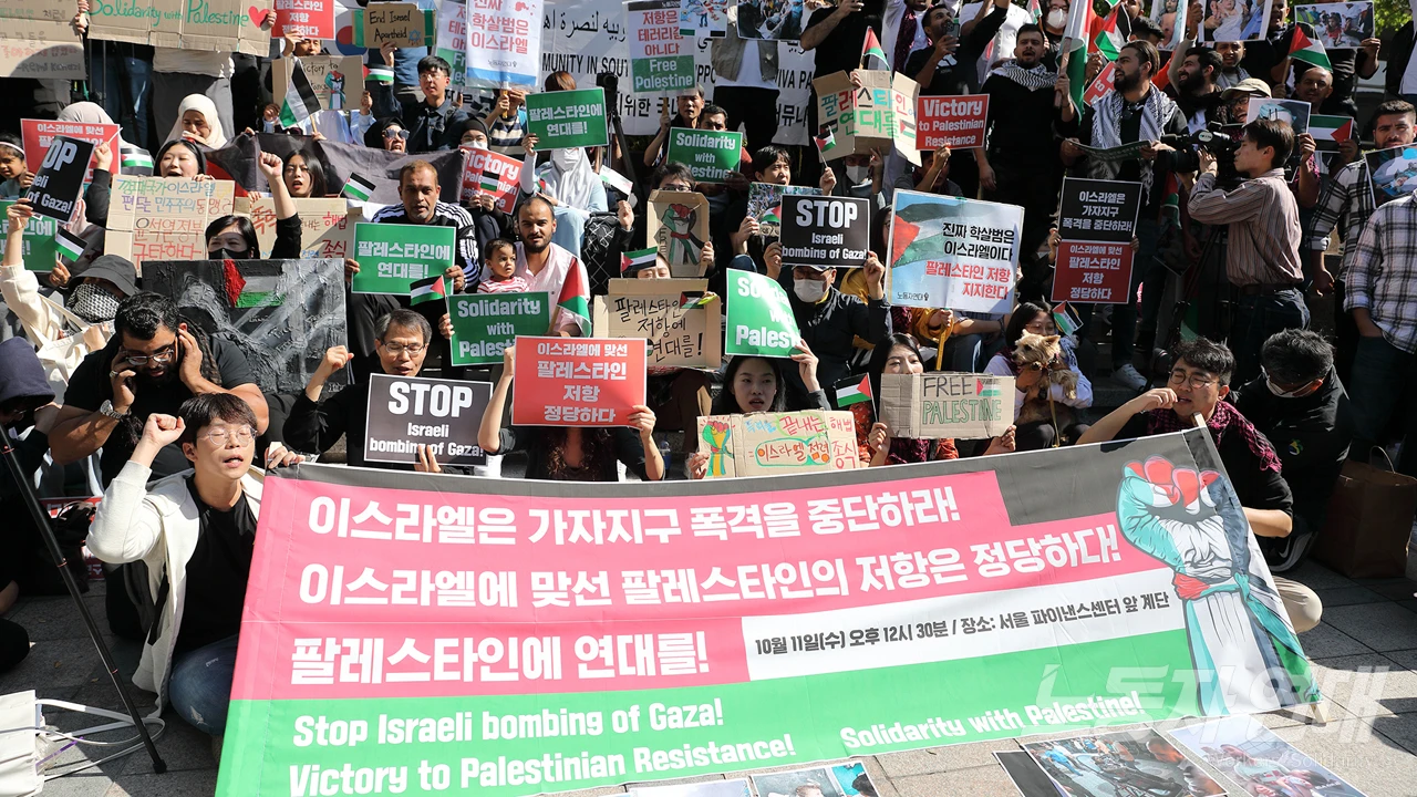 이런 가운데, 10월 11일 서울 도심에서 이스라엘의 가자지구 폭격을 규탄하고, 팔레스타인의 저항에 연대하는 집회와 행진이 열렸습니다. 이번 긴급 행동에는 한국인들과 국내 거주 팔레스타인인들을 비롯한 아랍계 출신 참가자 200여 명이 참가해 뜨거운 연대의 마음을 모았습니다.