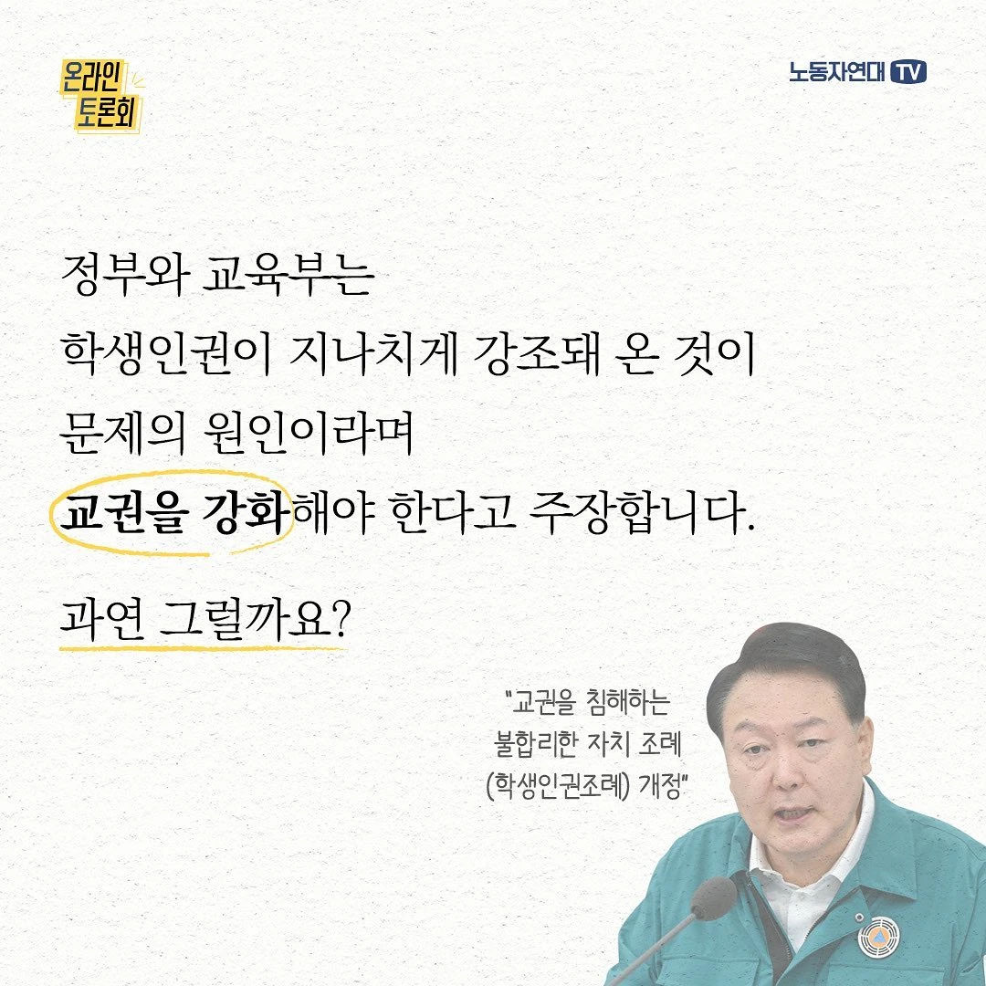 서울의 어느 초등학교 교사가 스스로 목숨을 끊은 비극을 계기로 교사들의 누적된 불만이 표출되고 있습니다. 교사 수천 명이 집회를 열기도 했죠. 정부와 교육부는 학생인권이 지나치게 강조돼 온 것이 문제의 원인이라며 교권을 강화해야 한다고 주장합니다. 과연 그럴까요? 요즘 교사들이 겪는 고통의 본질은 무엇일까요? 학생과 교사 간, 학부모와 교사 간 갈등의 원인과 해법은 무엇일까요? 오랫동안 교직에 몸담아 온 현직 교사에게 들어봅니다.