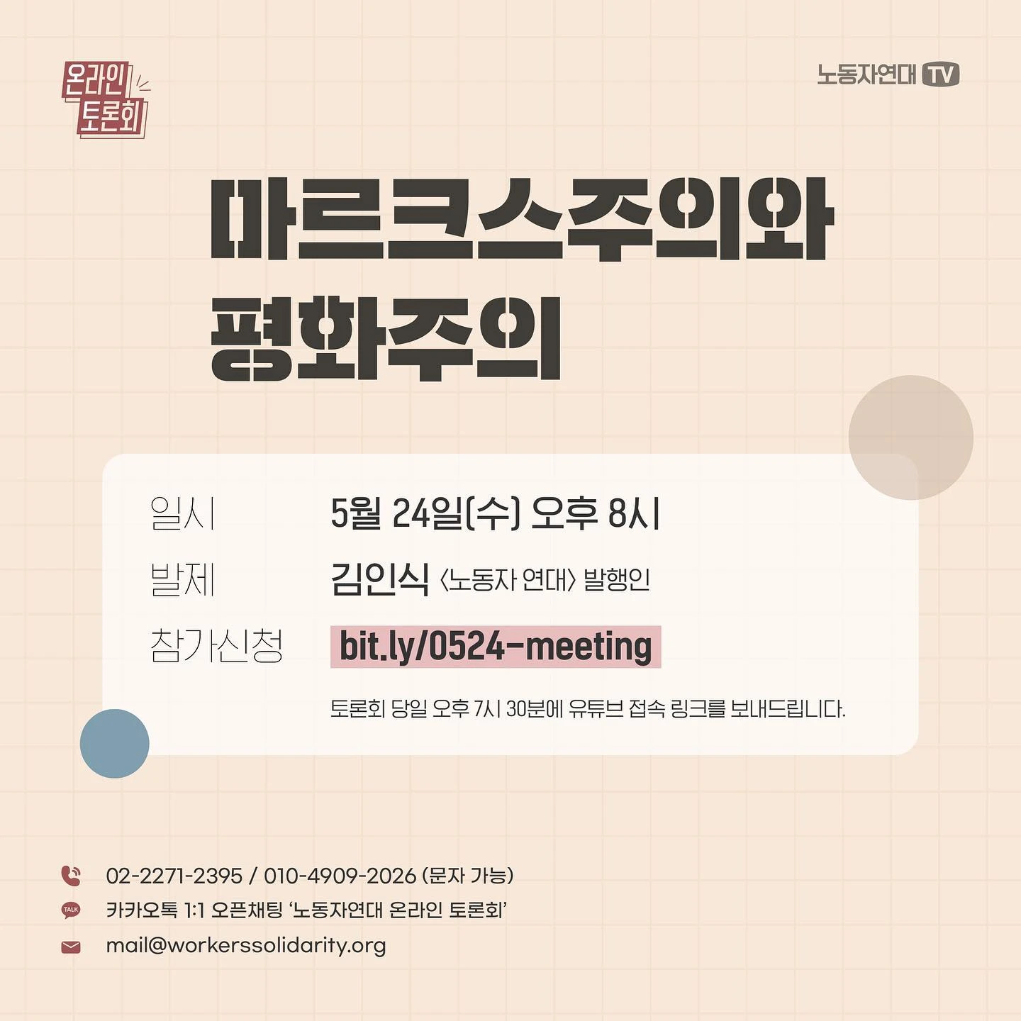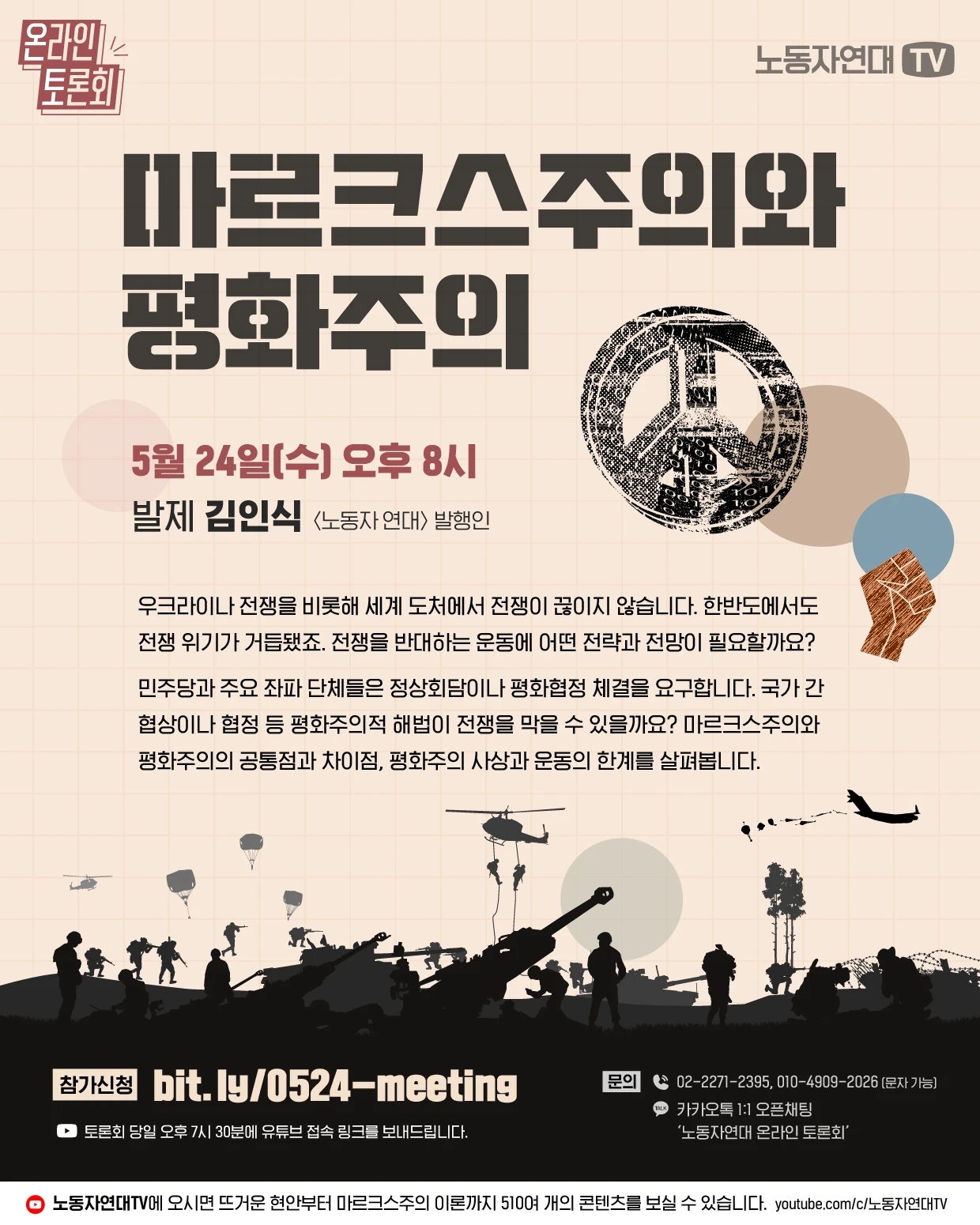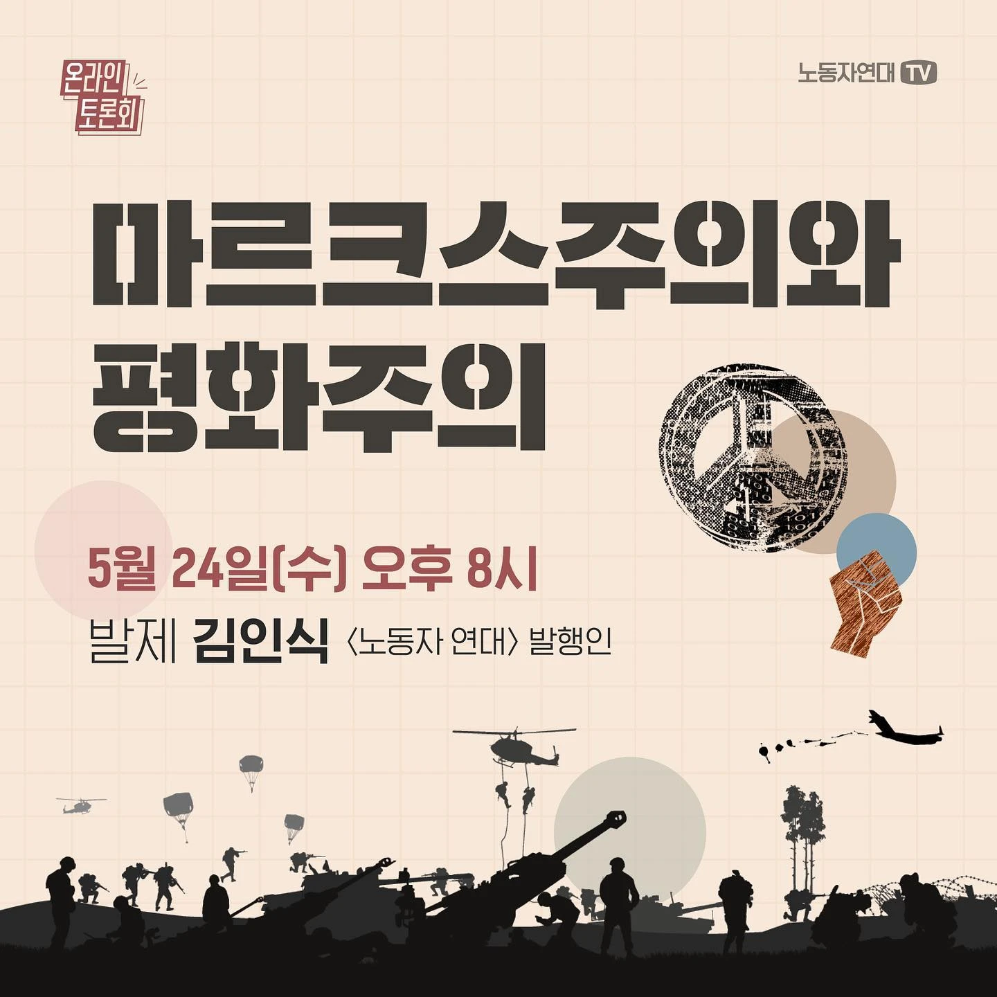 [노동자연대 온라인 토론회] 마르크스주의와 평화주의 - 일시: 5월 24(수) 오후 8시 - 발제: 김인식 (〈노동자 연대〉 발행인)